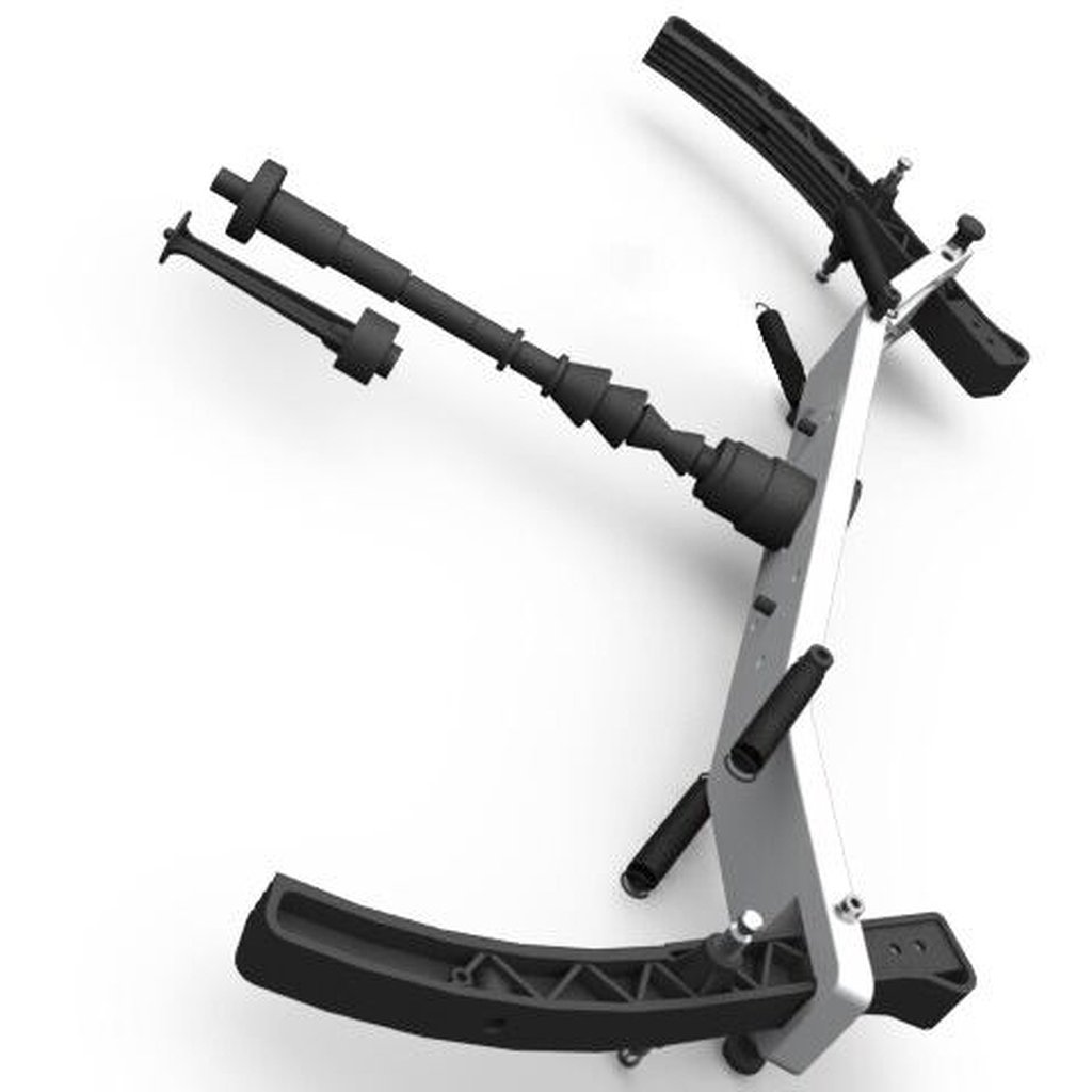 - Držiak: Pevný a odolný držiak, ktorý zaručuje bezpečnú fixáciu kolies motocykla na vyvažovačke osobného automobilu a zaisťuje presné výsledky pri každom vyvažovaní.