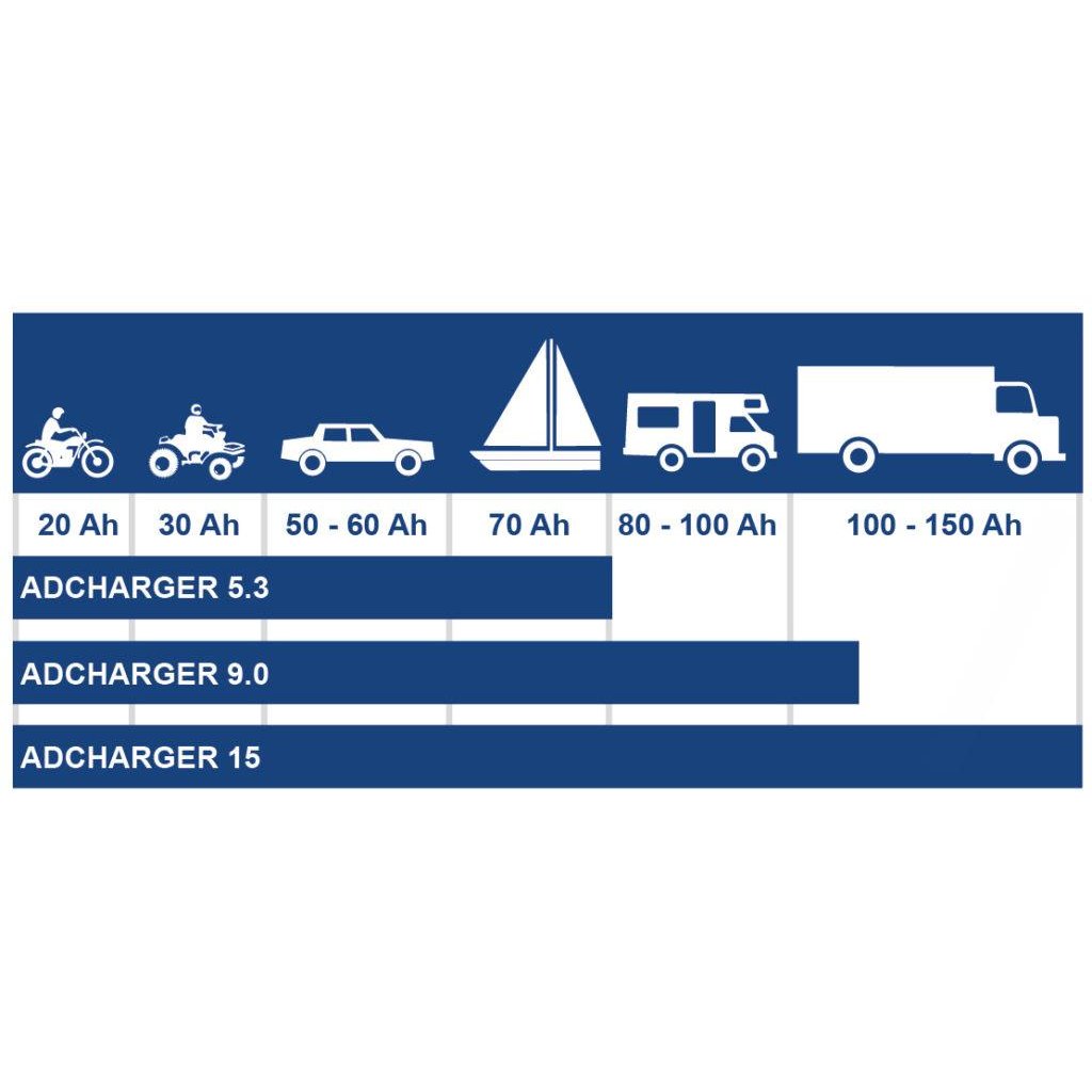 - Nabíjačka AD CHARGER 15 je moderná elektronická nabíjačka autobatérii všetkých typov
