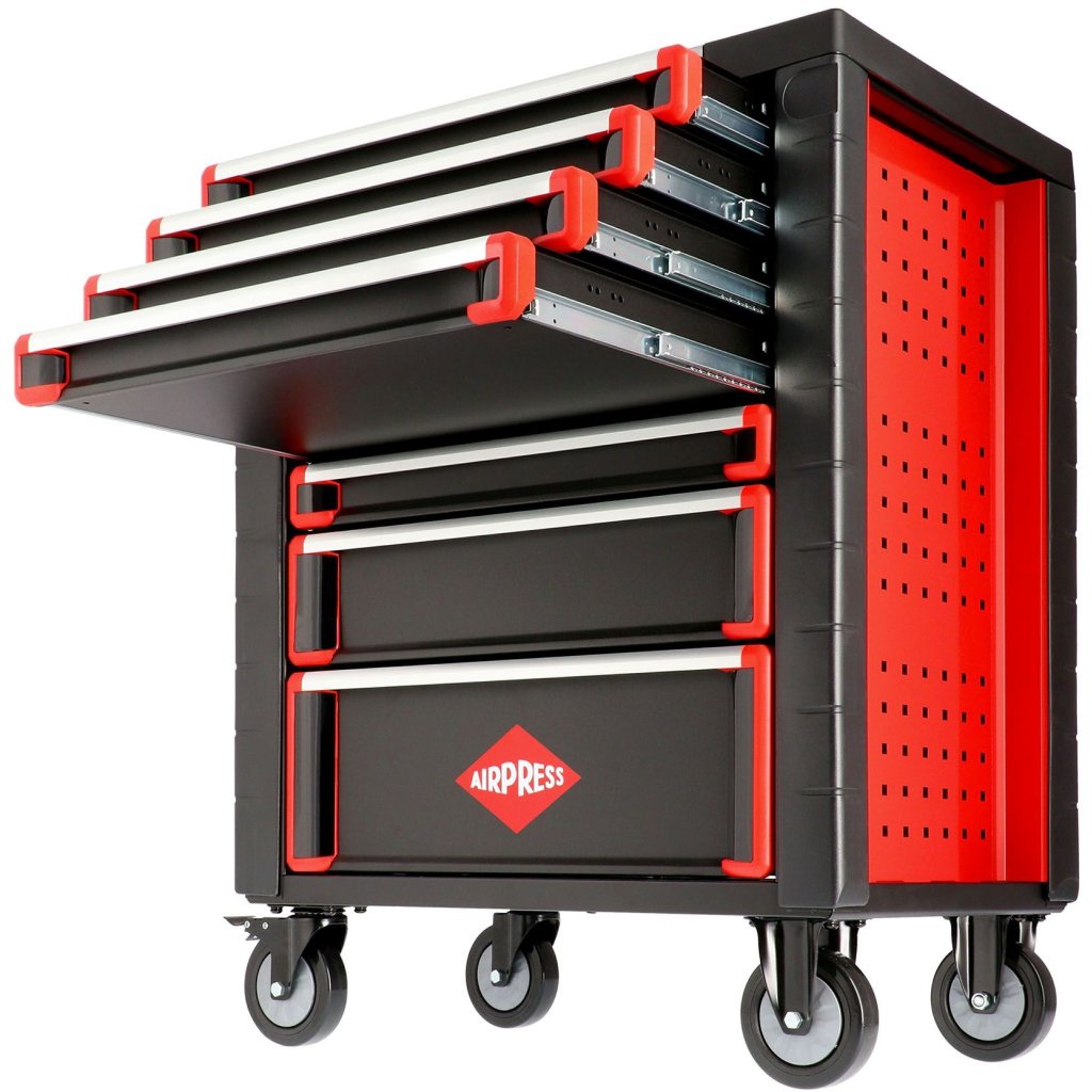 AIRPRESS Vozík na náradie so 7 zásuvkami – čierny/červený