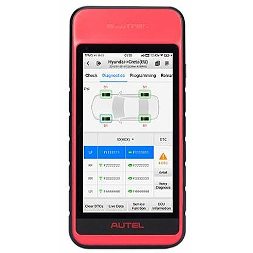 - Diagnostika ECU pre úplnú kontrolu stavu TPMS s popisom DTC,