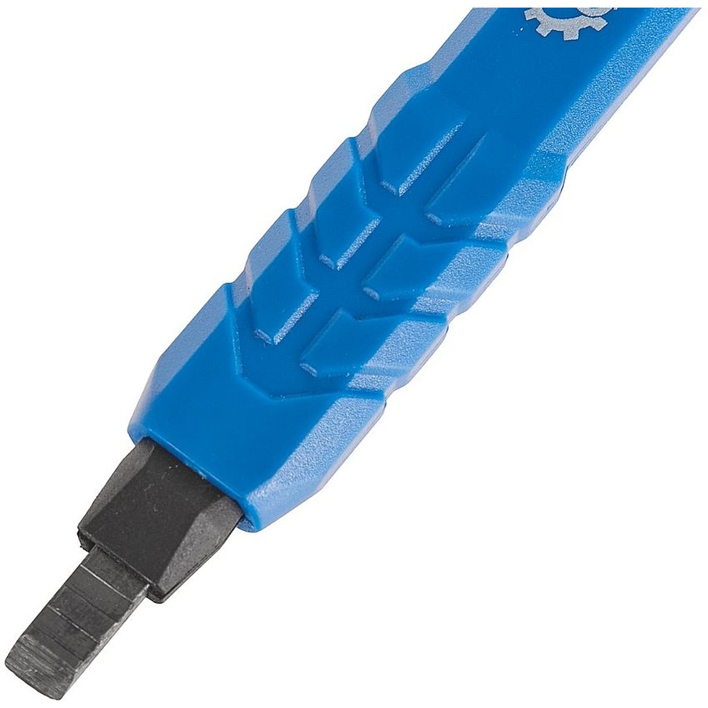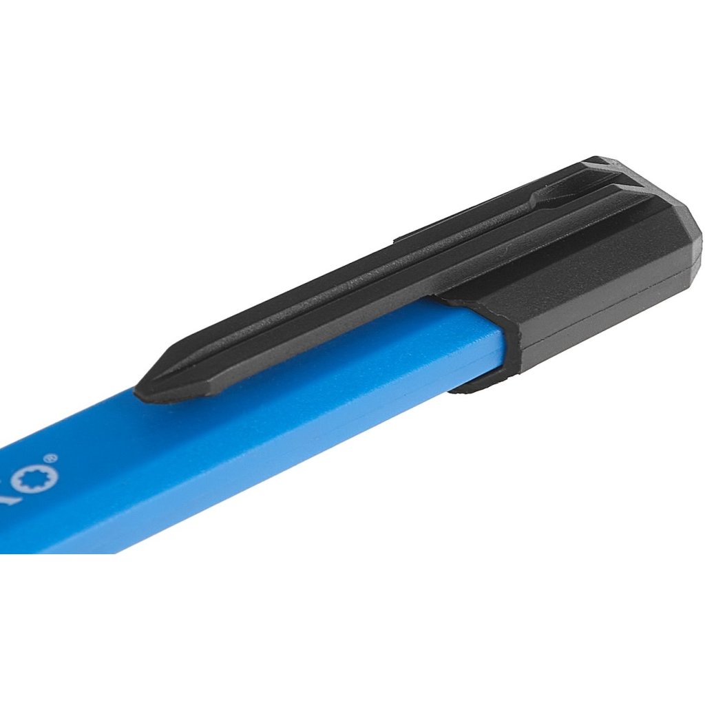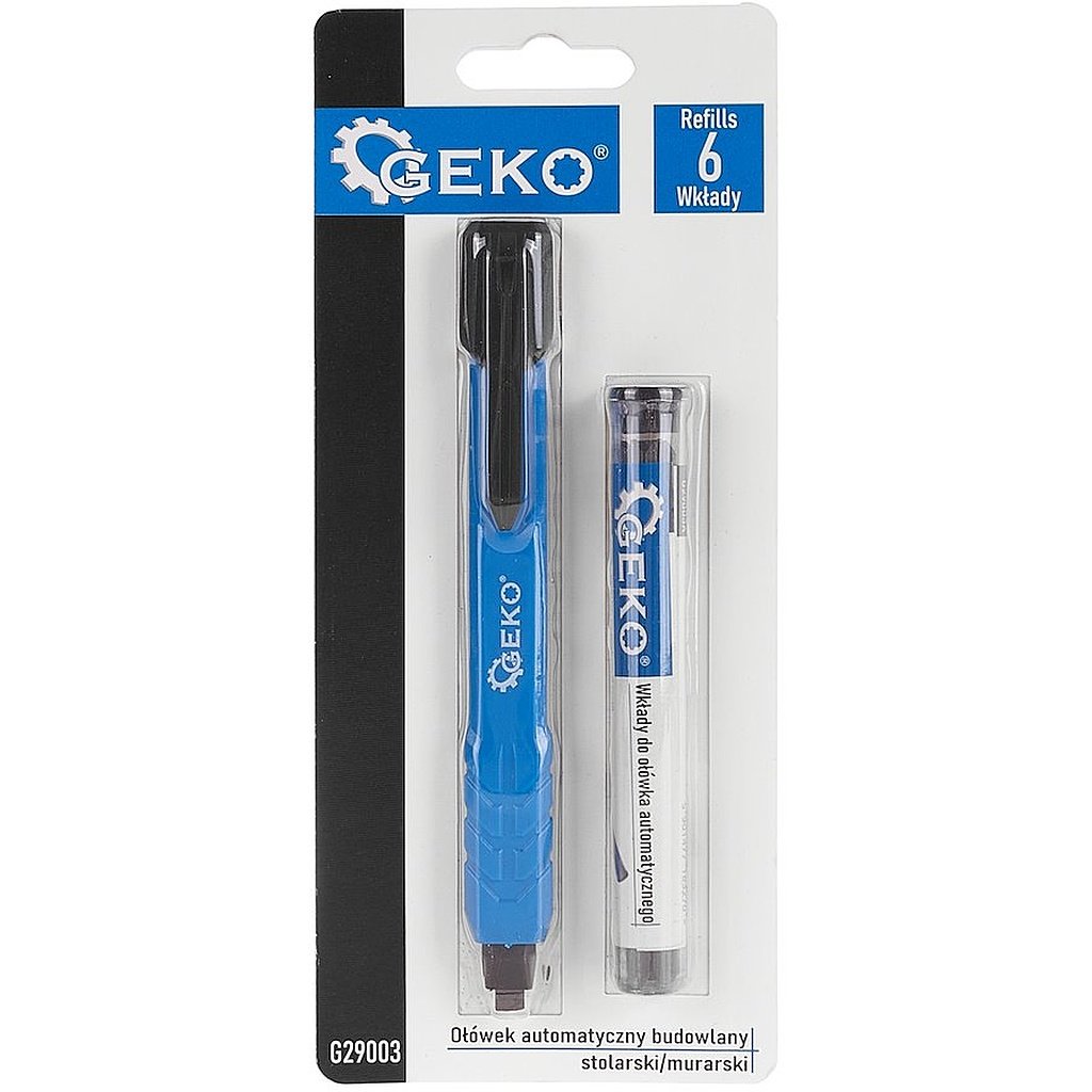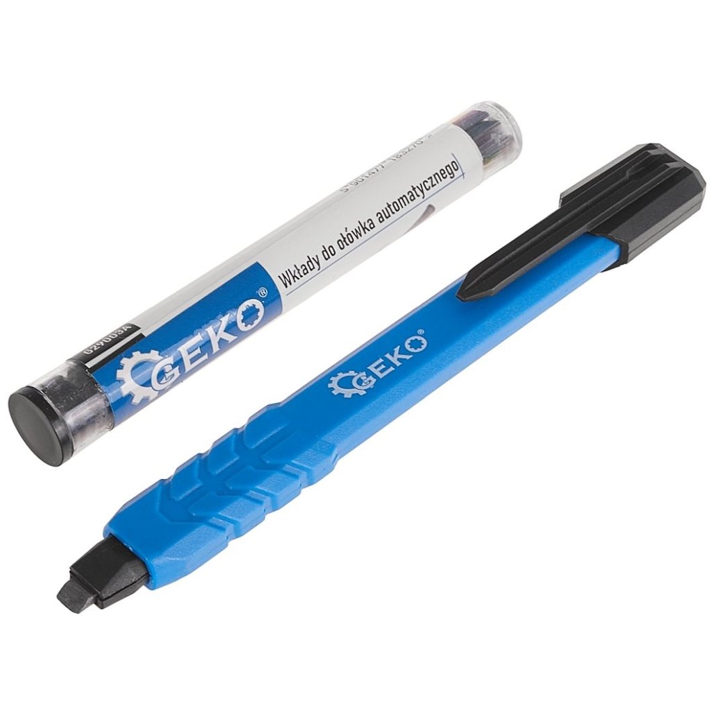Stavebná ceruzka vybavená automaticky vysúvateľnou grafitovou náplňou. Ideálna na označovanie rôznych druhov stavebných materiálov, pri vykonávaní tesárskych, renovačných a stavebných prác atď. Vybavená klipom na upevnenie. Tužka sa dodáva so 6 náplňami, jednou namontovanou a piatimi v špeciálnom kontajneri.
