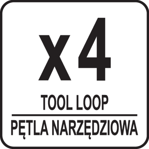 - štyri slučky na náradie na bedrovom páse pre ručné náradie s maximálnou hmotnosťou 2 kg na jednu slučku