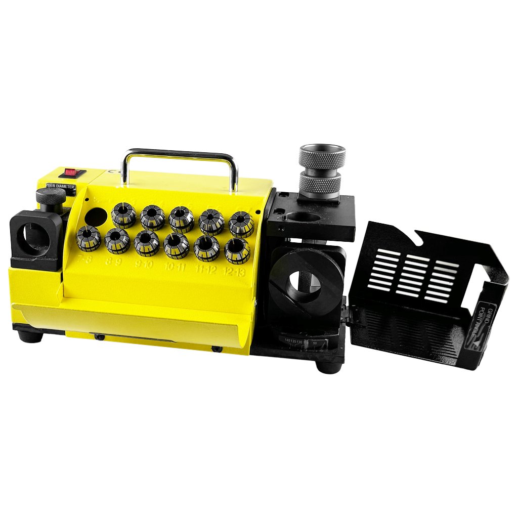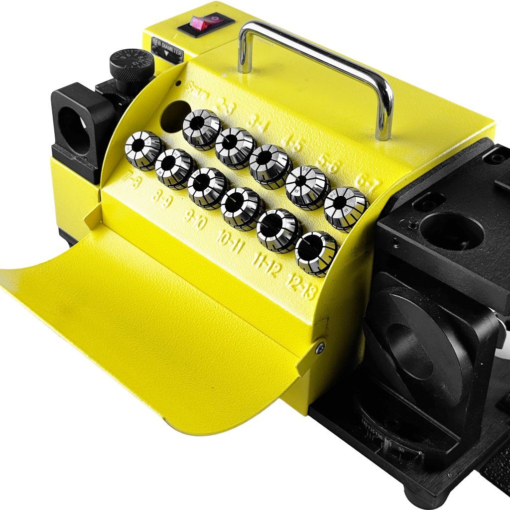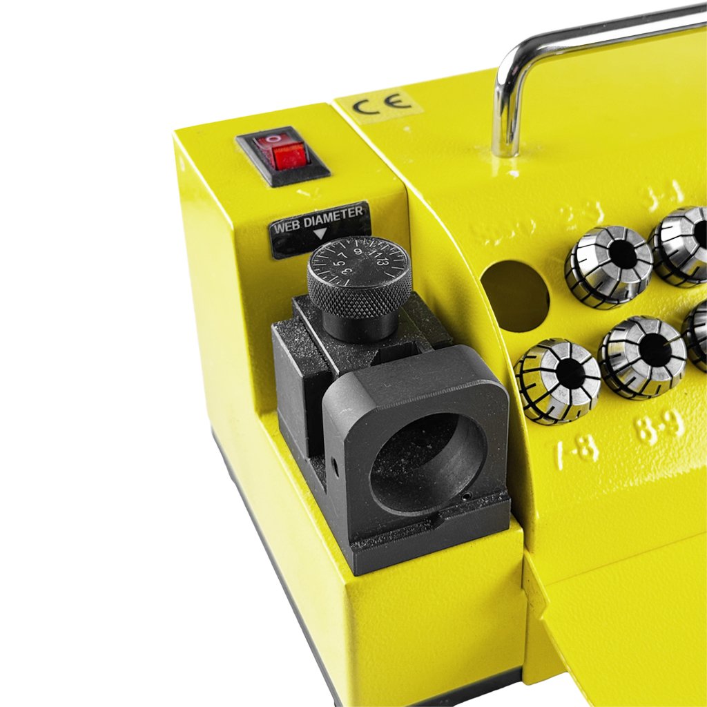 MR-13D je brúska na preostrovanie vrtákov Ø3–Ø13 mm s 11 elastickými klieštinami. Umožňuje ostriť vrcholový uhol, odľahčenie britu (lip relief) aj prednú reznú hranu, takže rýchlo obnoví geometriu vrtáka a vráti mu presnosť pri vŕtaní. CBN brúsny kotúč je už predinštalovaný a je určený pre HSS (rýchloreznú oceľ).