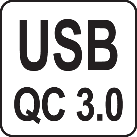 - Zásuvka USB-A s technológiou Q.C. 3.0 (rýchle nabíjanie): 5V/4,5A, 9V/3A, 12V/2,5A, 20V/1,5A (max. 30W)