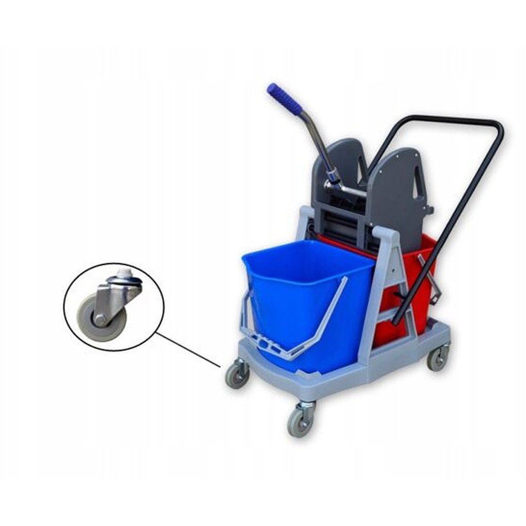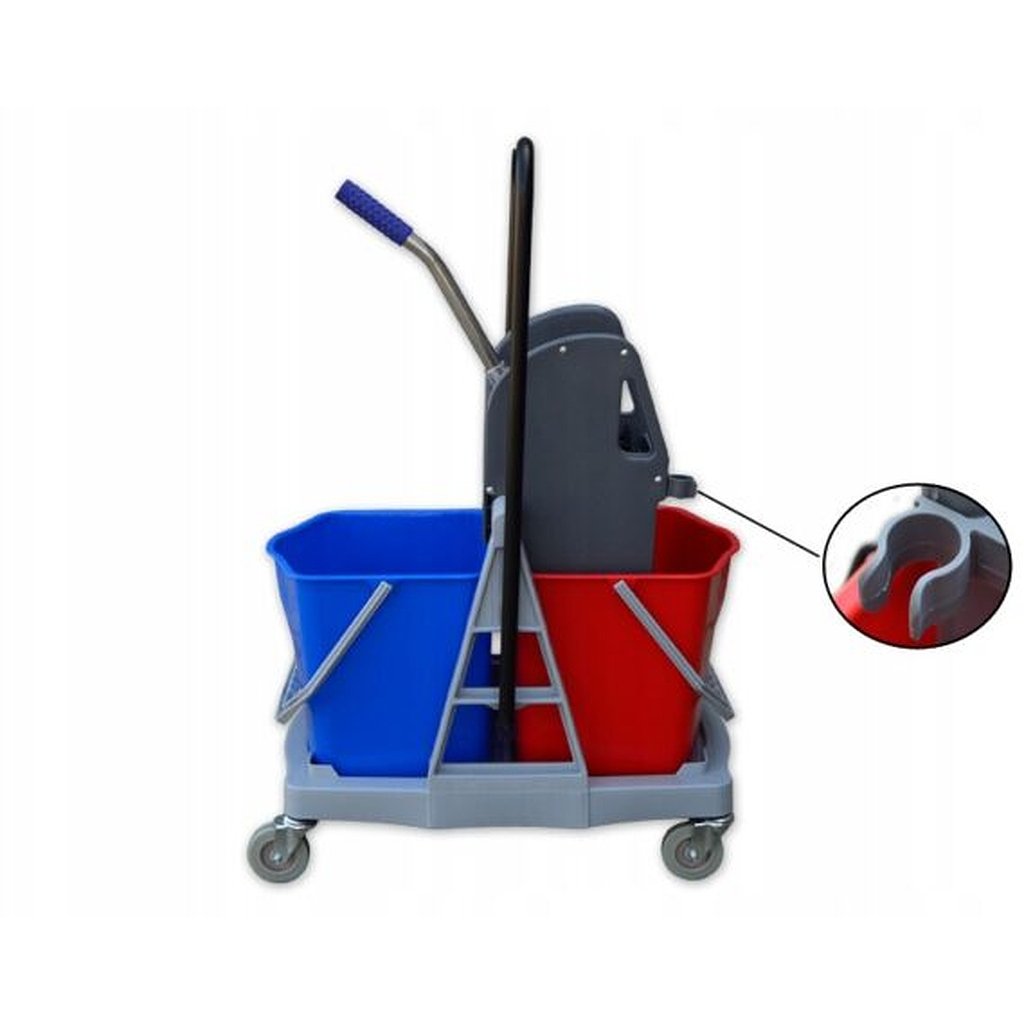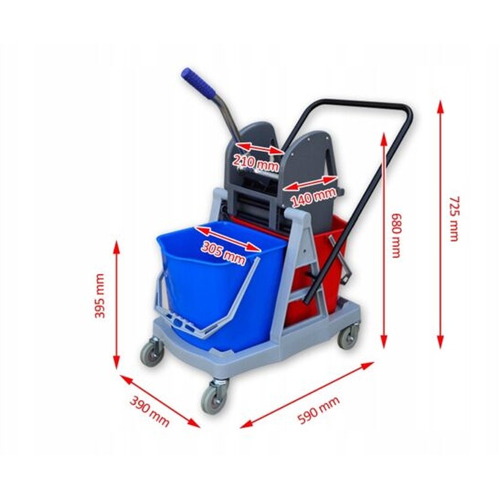 - dvojfarebné vedrá, modré pre čistú vodu a červené pre špinavú vodu, každé s objemom 15 litrov