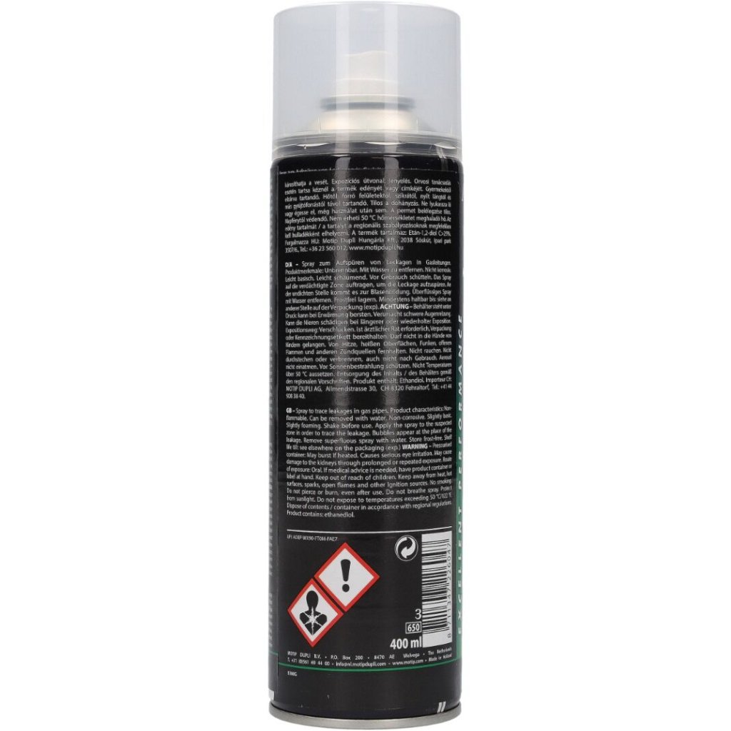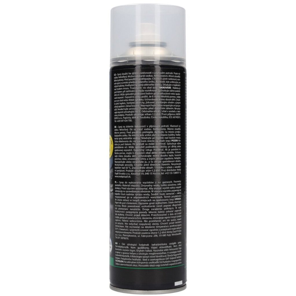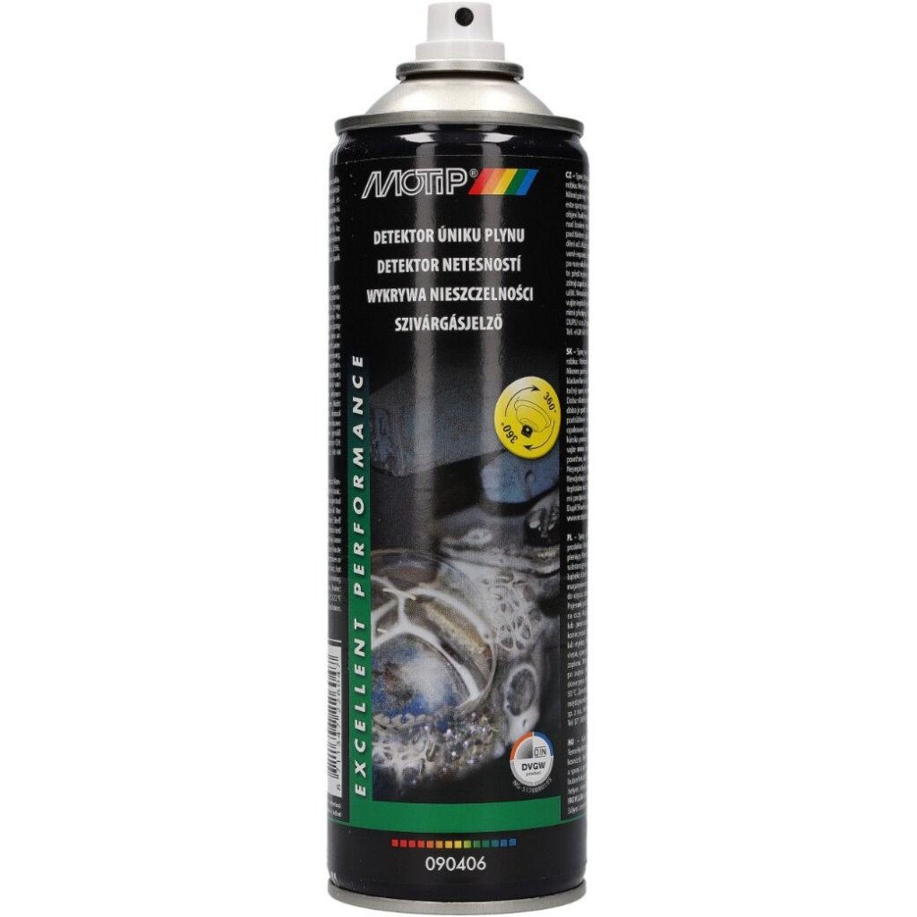 Špeciálny ventil umožňuje použitie prípravku v akejkoľvek polohe, čo uľahčuje obsluhu na ťažko dostupných miestach. Pred použitím nádobu pretrepte a potom prípravok rovnomerne rozotrite na miesta, kde je podozrenie na únik. V prípade úniku bude produkt vytvárať penivé bubliny, ktoré signalizujú problém.