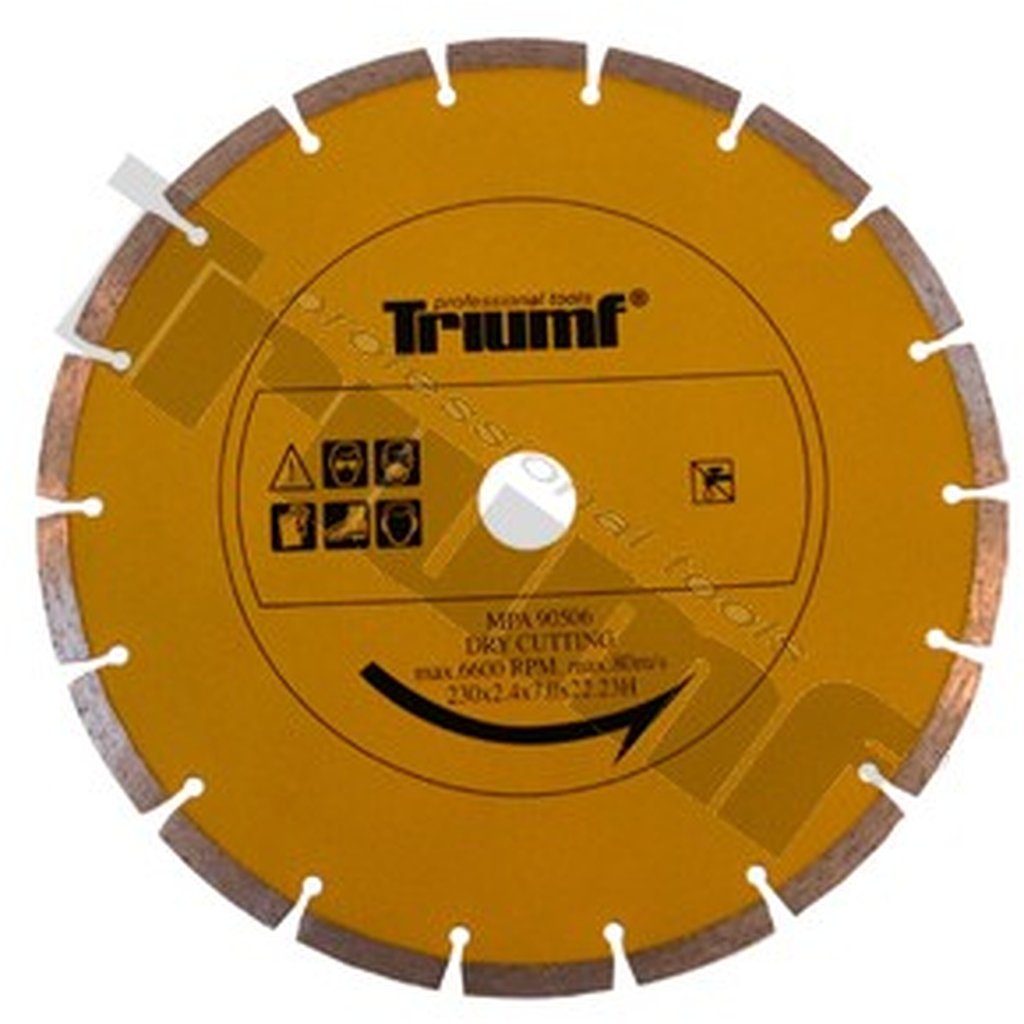 Kotúč je určený na rezanie prírodných a stavebných materiálov (tehly, betón, stavebné bloky a stredne tvrdý kameň). Priemer otvoru: 22 - 23 mm.