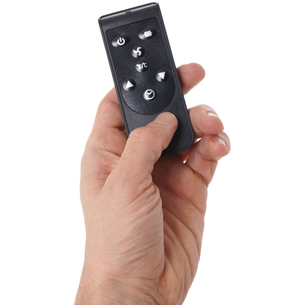Sada obsahuje diaľkové ovládanie - na diaľku vieme nastaviť požadovanú teplotu, otáčky dúchadla alebo čas, po ktorom sa má ohrievač vypnúť!