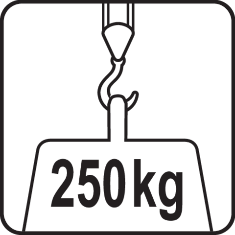 | Max: | 125 (bez prídavného háčika)|250 (s prídavným háčikom) kg |