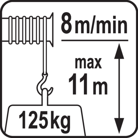 | Maximálna výška zdvihu: | 11 (bez prídavného háčika)|5,5 (s prídavným háčikom) m |