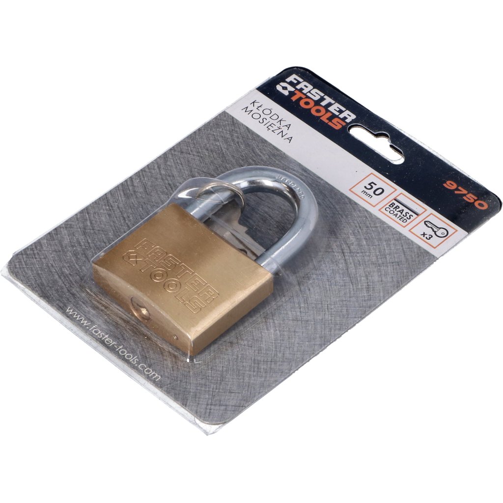 FASTER TOOLS mosadzný zámok 60 mm – plné logo