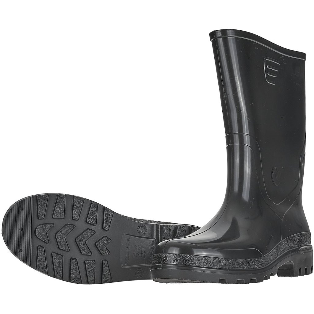PVC čižmy Wellington sú tesné a chránia pred vodou, vlhkosťou, olejom a pošmyknutím na povrchu keramickej dlaždice (SR).