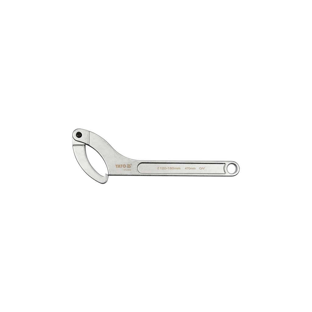 Hákový kľúč YT-01674 je vhodný na prácu s drážkovanými okrúhlymi maticami. Vďaka kĺbovej konštrukcii sa dobre prispôsobí rôznym podmienkam pri práci.