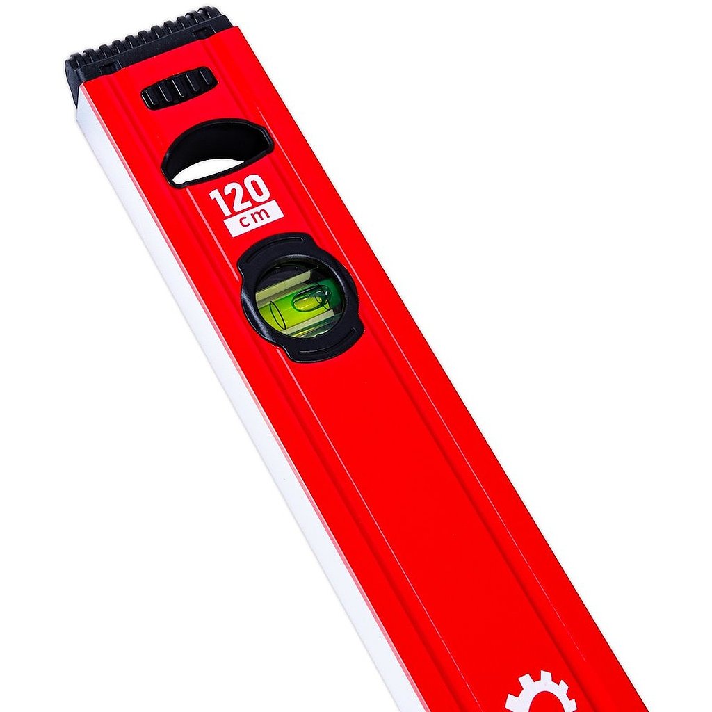 - Pracovný rozsah – 1200 mm – vhodný na montáž vstavaných skríň, kontrolu rovnosti stien, osadzovanie okenných rámov a pokládku veľkých sadrokartónových dosiek.