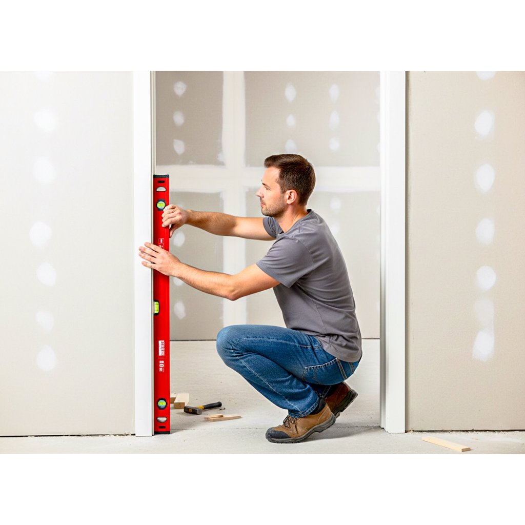 - Pracovný rozsah – 800 mm - Vhodné na montáž nástenných skriniek, kontrolu rovnosti zárubní, ako aj na pokládku veľkoformátových dlaždíc alebo montážnych profilov pre zavesené stropy.