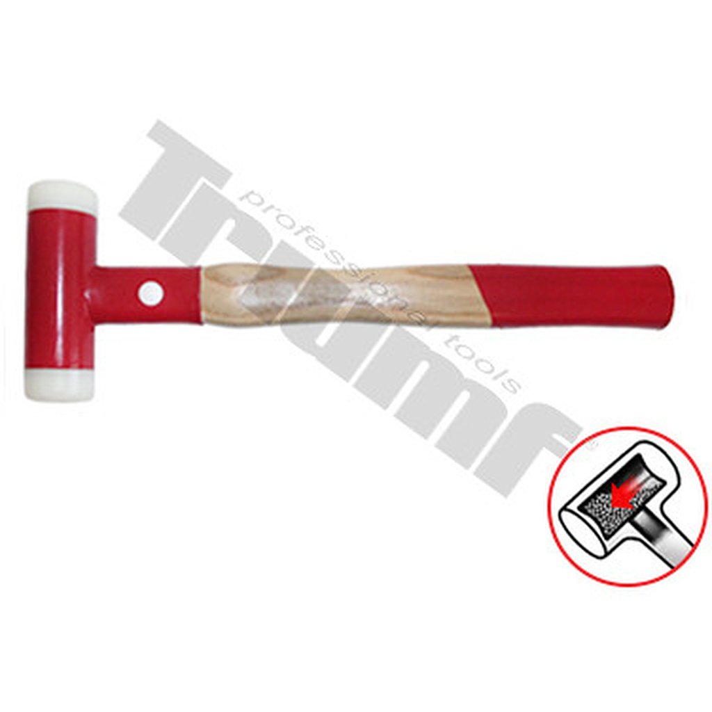 Vnútro kladiva obsahuje množstvo olovených guličiek, ktoré pri údere znásobia úder a zabránia odskakovaniu. Drevená rukoväť je vo vrchnej časti zasunutá v kovovej násade a poistená čapom aby dlhodobo odolávala rezonancií. Rukoväť je lakovaná pre pohodlné držanie. Polyamidové hlavice pre dlhú životnosť.| Kategória: | Plastové a gumené kladivá |
