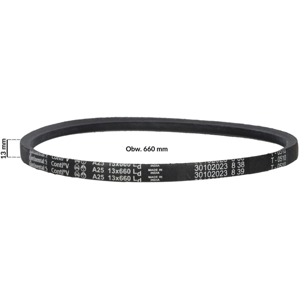 Klinový remeň, dĺžka 660 mm, (A25) pre vyzúvačku pneumatík INVENTO TCS 521 SA, TC 720, TC 722, TC 724 2V