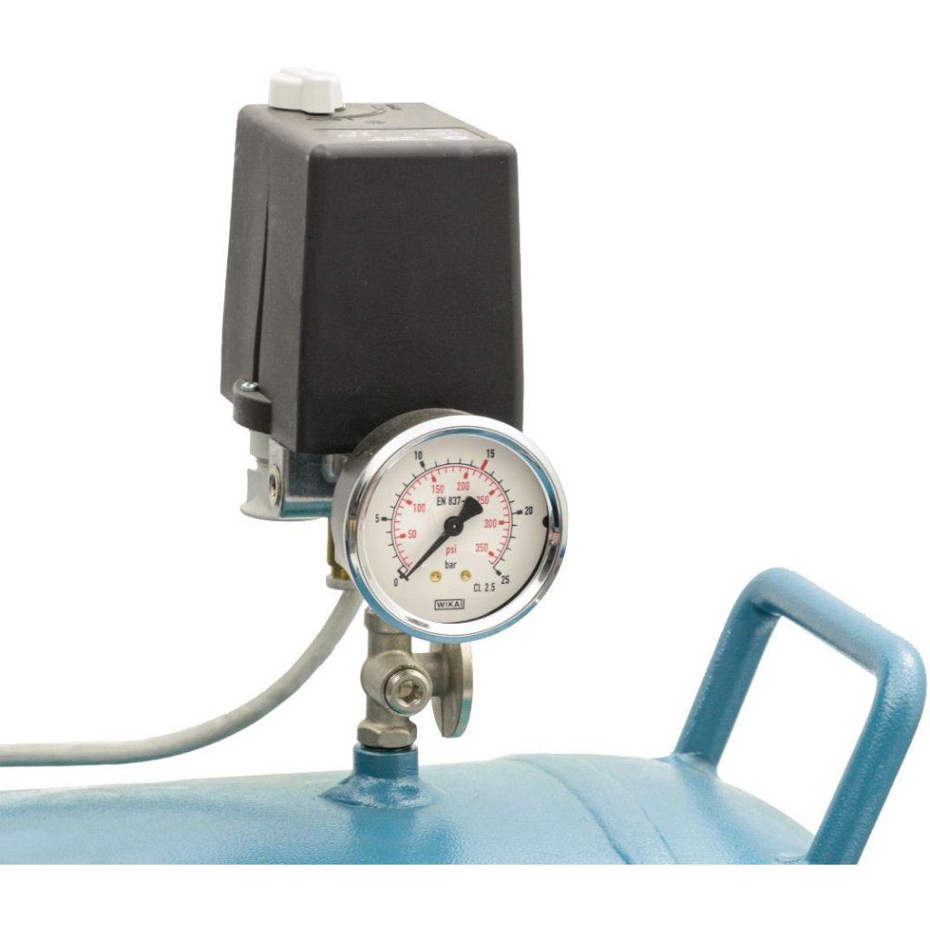 - Tlakový spínač Condor: Kompresor je vybavený tlakovým spínačom renomovanej značky Condor, ktorý presne monitoruje prevádzkový tlak a chráni motor pred prehriatím, čím zabezpečuje bezpečnú a spoľahlivú prevádzku jednotky.