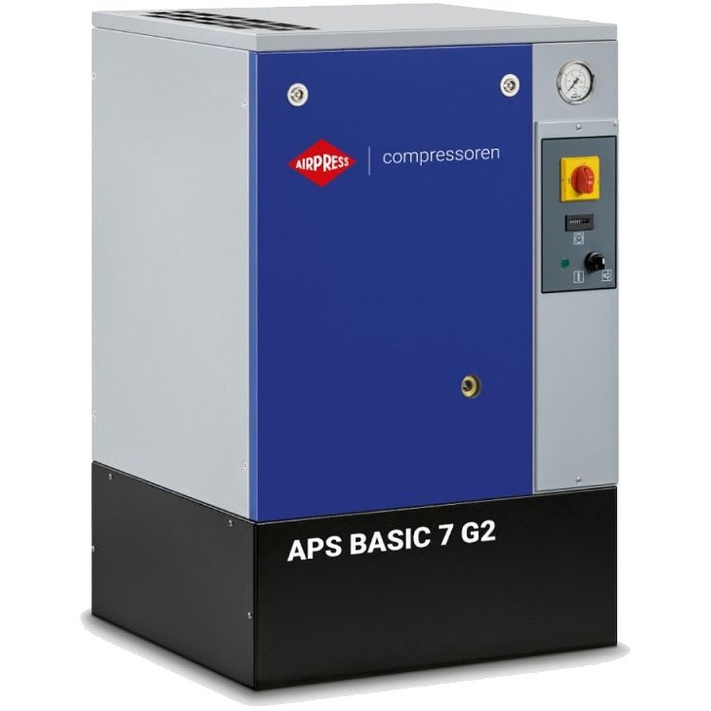 APS 7 Basic G2 je výkonný skrutkový kompresor určený pre profesionálne dielne a stredne veľké výrobné prevádzky. S výkonom 780 l/min a maximálnym prevádzkovým tlakom 10 barov je zariadenie ideálne pre aplikácie vyžadujúce veľké objemy stlačeného vzduchu.