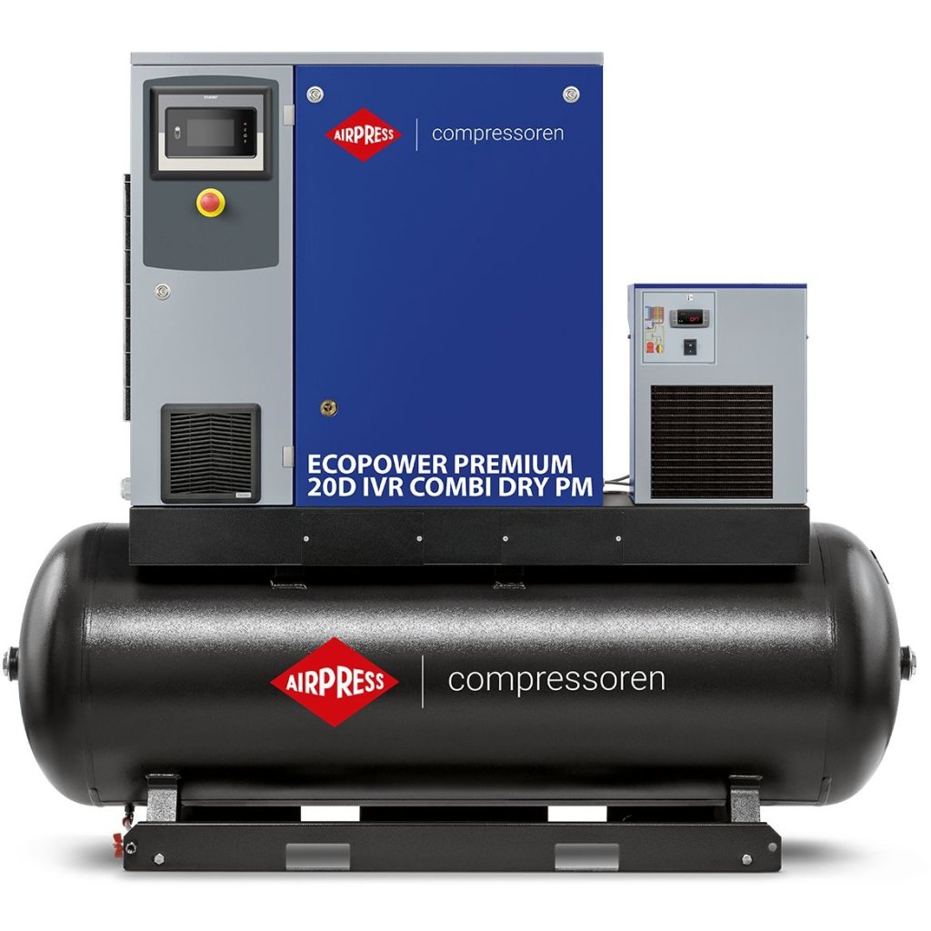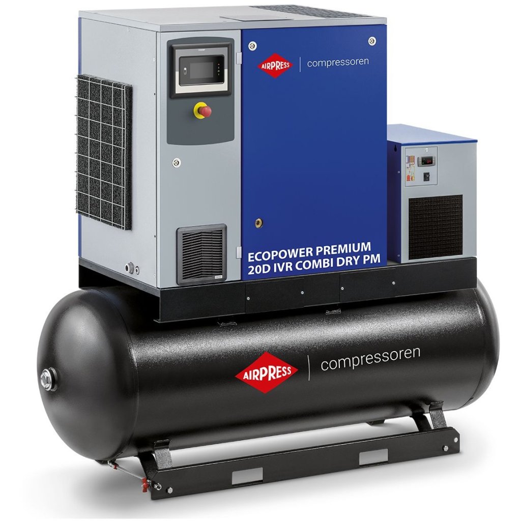 EcoPower Premium 20D IVR Combi Dry PM je moderný skrutkový kompresor s premenlivými otáčkami, ktorý kombinuje priamy pohon, najmodernejší magnetický motor (PM), integrovaný odvlhčovač a 500 l nádrž. Zariadenie poskytuje prietok vzduchu od 672 do 3000 l/min pri maximálnom prevádzkovom tlaku 13 barov, čím ponúka suchý, vysokokvalitný vzduch a výraznú úsporu energie aj v tých najnáročnejších prevádzkových podmienkach.