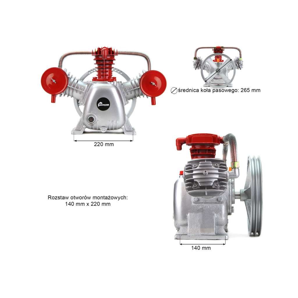 Ponúkame robustný trojvalcový vzduchový kompresor. Zariadenie je vybavené dvoma vzduchovými filtrami s účinným ventilačným systémom - toto riešenie umožňuje dosiahnuť maximálnu účinnosť z relatívne malého kompresora. Kompresor je vybavený kalenými liatinovými valcami, ktoré zaručujú dlhú životnosť a účinné chladenie kompresora. Okrem toho má konštrukcia osvedčené riešenia, ktoré zvyšujú chladenie kompresora, vrátane chladiacich radiátorov a chladiacich rebier na hlavách, vďaka čomu sa naša konštrukcia vyznačuje vysokou odolnosťou voči mechanickému poškodeniu a veľmi dobrou schopnosťou odvádzať teplo do okolia.