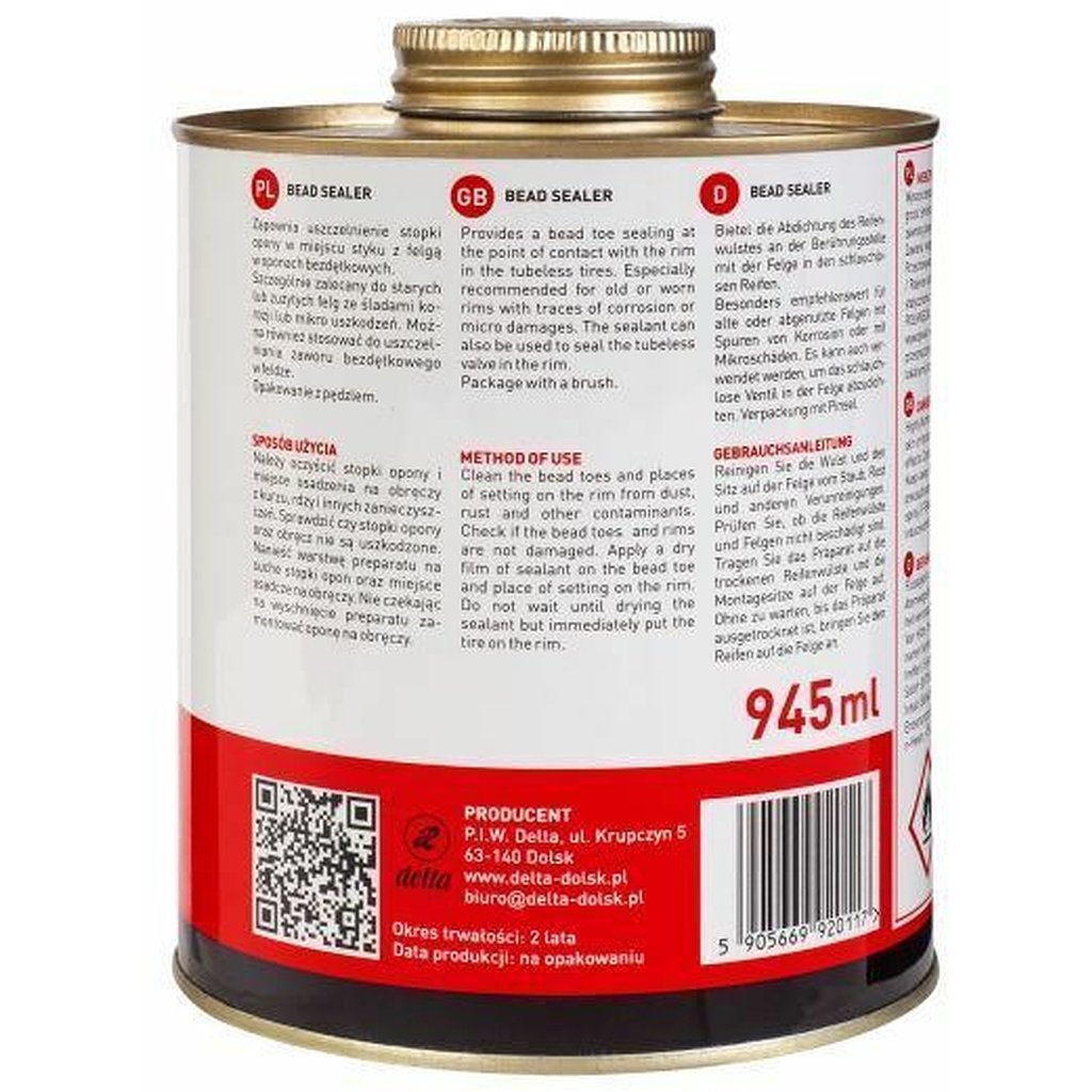 BEAD SEALER 945 ml Provides sealing of the tire bead at the point of contact with the rim in tubeless tires. Especially recommended for old or worn rims with traces of corrosion or micro damage. You can also use a tubeless valve seal in the rim. Brush packaging. HOW TO USE: clean the tire beads and the seat on the rim from dust, rust and other impurities. Check that the tire beads and rim are not damaged. Apply a layer of the preparation on dry tire beads and the seat on the rim. Without waiting for the preparation to dry, mount the tire on the rim.| Kategória: | Tmel na guľôčky |