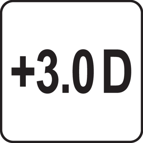 Okuliare sú k dispozícii s týmito hodnotami zväčšenia: +1,0 D, +1,5 D,+ 2,0 D, + 2,5 D, +3,0 D*.
