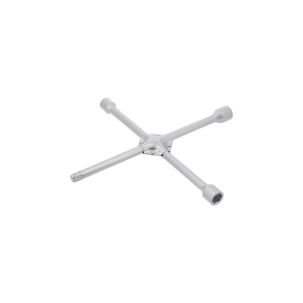 Krížový kľúč na kolesá automobilov, vhodný najmä pri výmene pneumatík alebo uťahovaní a povoľovaní skrutiek. Vyrobený z odolnej uhlíkovej ocele, ktorá zabezpečuje dlhú životnosť.