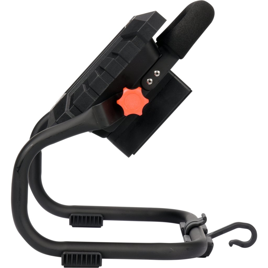 Výkonný dobíjací reflektor vhodný na osvetlenie staveniska, dielne a kempingu. Nastaviteľný uhol lúča a odolný kovový kryt sú odolné voči mechanickému poškodeniu a nepriaznivým poveternostným podmienkam, ako aj prachu, piesku atď.