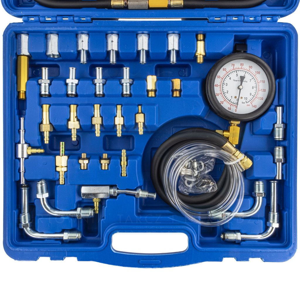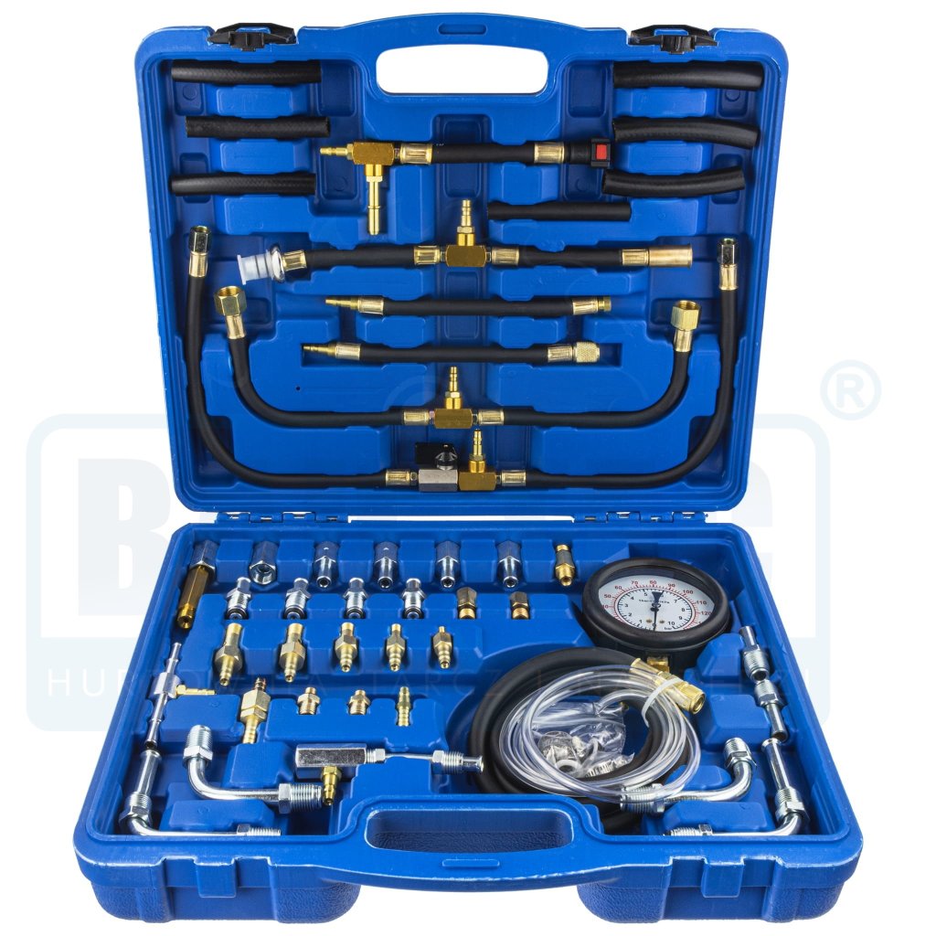 Univerzálny tester tlaku paliva pre benzínové motory s robustnou konštrukciou a širokým rozsahom použitia. Umožňuje presné meranie tlaku v palivových systémoch s vstrekovaním benzínu. Celý set je uložený v praktickom plastovom kufríku pre jednoduché prenášanie a skladovanie.