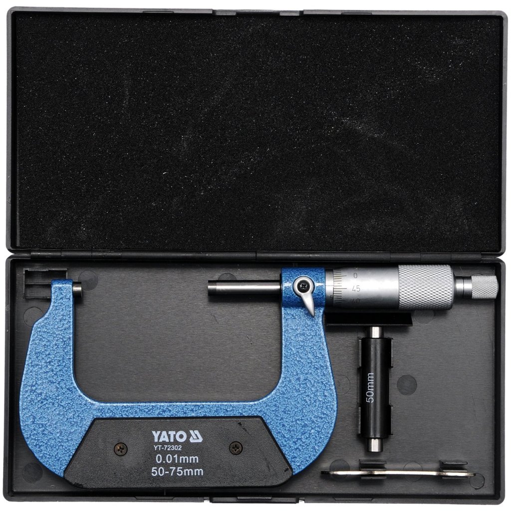 Mikrometer určený na presné meranie v rozsahu 50 až 75 mm.