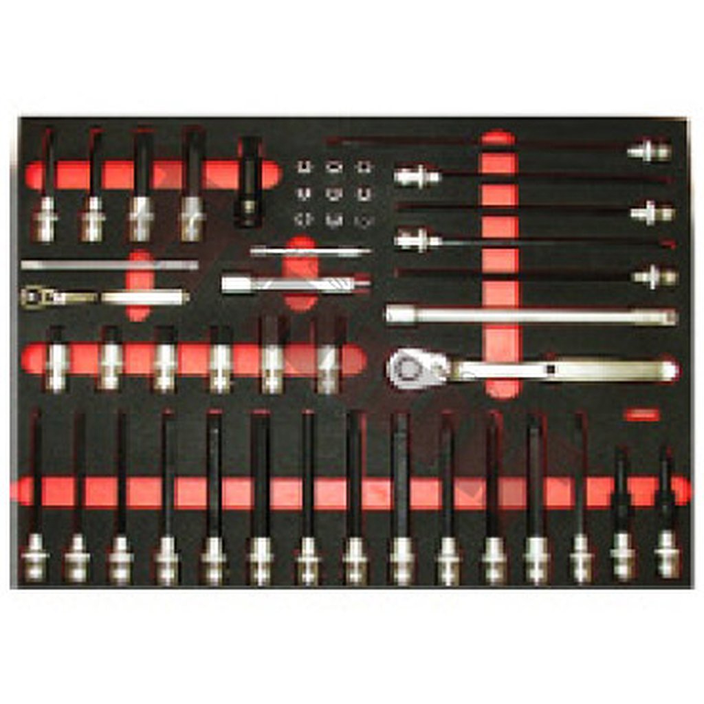 Modul nástavcov často využívaných pri oprave motorov, časti náprav a riadenia ako napr. hlavy valcov, olejové výpuste, olejové vane, guľové čapy, váhy vzduchu (MAF senzory), brzdové strmene, vstrekovače a iné. Zostava obsahuje račne s pásovým prevodom, ktoré značne uľahčujú prácu v obmedzených priestoroch a predĺženia proti vypadnutiunástavca, takže hlavica už nikdy nespadne do motorového priestoru.