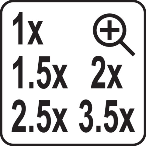 - 5 vymeniteľných šošoviek v balení: 1x, 1,5x, 2x, 2,5x, 3,5x