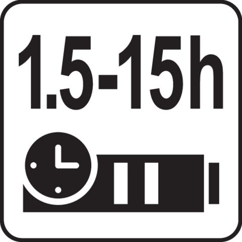 - prevádzkový čas: 1,5 h (vysoký režim), 3,5 h (stredný režim), 15 h (nízky režim)