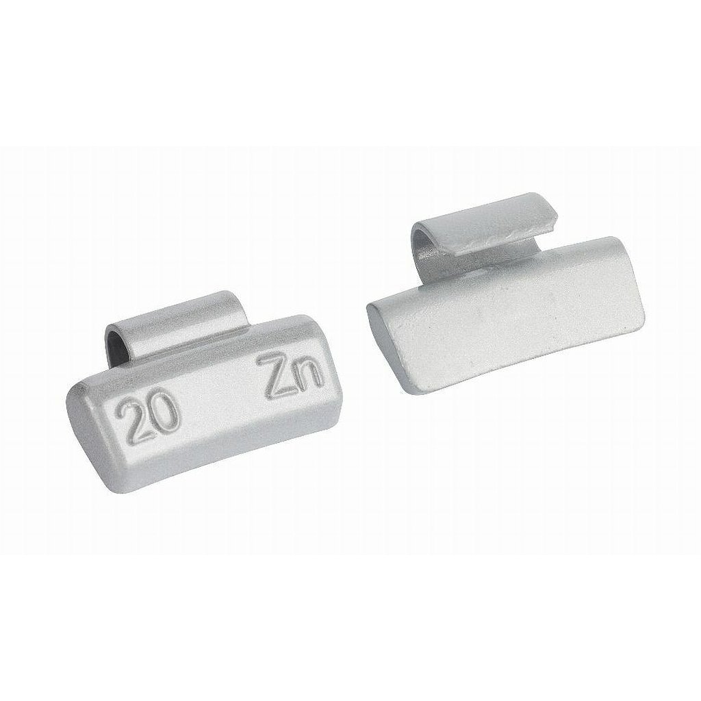 - Naklepávacie závažia na hliníkové disky s hmotnosťou 20 gramov sú vyrobené zo zinku (ZN) a nastriekané sivou práškovou farbou . Závažia sa montujú na disk pomocou nasadenia na disku s použitím špeciálnych klieští na závažia. Stabilné usadenie na disku zaručuje presne prispôsobená pružina. Majú elegantný tvar, vďaka čomu dokonale priliehajú k okraju disku