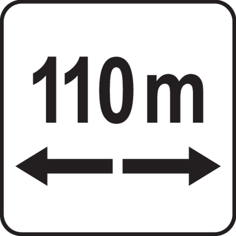 - dosah: 110 m (v rozmedzí 1 až 55 m)