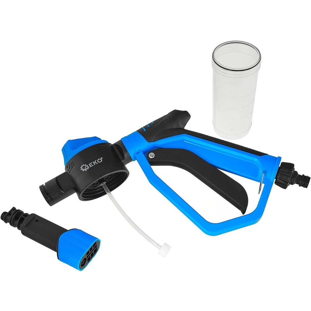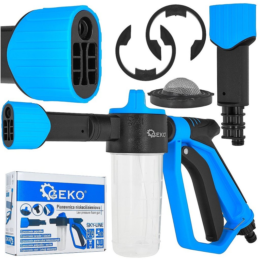 Szukasz prostego i wygodnego narzędzia do mycia bez konieczności używania myjki ciśnieniowej? Pianownica niskociśnieniowa Sky-Line to praktyczna końcówka do standardowego węża ogrodowego, która tworzy gęstą pianę skutecznie rozpuszczającą brud, a po chwili pozwala spłukać powierzchnię czystą wodą. Urządzenie wyposażone jest w dwa tryby pracy: Pianowanie – idealne do nanoszenia detergentu i aktywnej piany. Spłukiwanie – szybkie zmycie zabrudzeń samą wodą. Przezroczysty zbiornik o pojemności 240 ml umożliwia łatwe odmierzanie chemii i bieżącą kontrolę jej poziomu. Dzięki króćcowi przyłączeniowemu z filtrem siatkowym pianownica jest zabezpieczona przed drobnymi zanieczyszczeniami z instalacji wodnej, co wydłuża żywotność i stabilizuje pracę. W komplecie otrzymujesz zapasowy filtr, co zwiększa niezawodność zestawu na lata. Wygodny pistolet ma funkcję blokady pracy ciągłej, więc nie musisz stale naciskać spustu – to duża oszczędność sił przy dłuższym myciu. Najważniejsze zalety 2 tryby pracy: pianownica + spłukiwanie – przełączanie w trakcie pracy. Zbiornik 240 ml – przezroczysty, z podziałką do łatwego dozowania chemii. Standardowe szybkozłącza ogrodowe – szybki montaż i pełna kompatybilność. Króciec z filtrem + zapasowy filtr w zestawie – ochrona przed zabrudzeniami, dłuższa żywotność. Blokada pracy ciągłej – wygoda przy dłuższym myciu. Niskociśnieniowa praca – idealna do codziennych zastosowań domowych. Specyfikacja techniczna Typ: pianownica niskociśnieniowa do węża ogrodowego Seria: Sku-line Tryby pracy: pianowanie / spłukiwanie Pojemność zbiornika: 240 ml Zbiornik: przezroczysty, z podziałką Przyłącze: króciec do standardowych szybkozłączy ogrodowych Filtr: tak, w króćcu + zapasowy filtr w zestawie Pistolet: z blokadą pracy ciągłej Zastosowanie Pianownica Sky-Line świetnie sprawdzi się w domu i ogrodzie: mycie samochodów, motocykli, rowerów, czyszczenie tarasów, kostki brukowej i ścieżek, mycie elewacji, ogrodzeń, mebli ogrodowych, czyszczenie rolet, żaluzji, okien i innych powierzchni. Jak używać? Podłącz pianownicę do węża ogrodowego poprzez szybkozłącze. Wlej detergent do zbiornika (maks. 240 ml). Ustaw tryb pianowania i nanieś pianę na czyszczoną powierzchnię. Po chwili przełącz na tryb spłukiwania i zmyj brud wodą. Jeśli myjesz dłużej – użyj blokady pracy ciągłej.| Kategória: | GEKO |