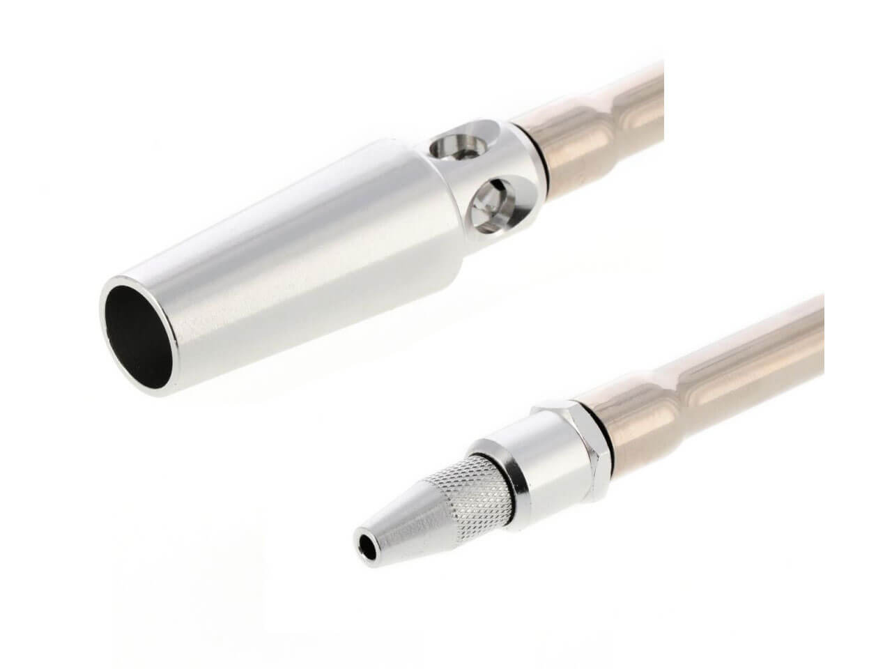 Súprava obsahuje dve trysky, prúdovú trysku a turbo trysku. S prúdovou tryskou otáčate prúd vzduchu. S turbo dýzou je prúd vzduchu oveľa silnejší. Ak chcete vysávať dielňu alebo bicykel s veľkým výkonom, toto je pre vás ideálne riešenie.