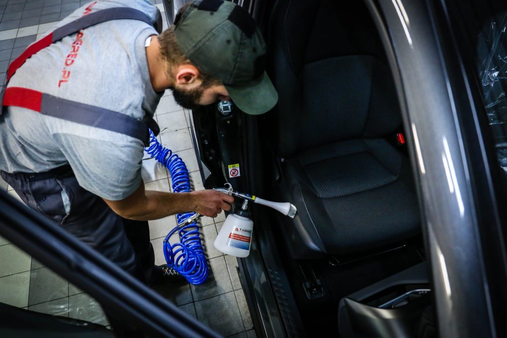 Pištoľ na mokré čistenie karosérie a nečistôt v interiéri určená pre amatérov aj profesionálov. vývody vzduchu, klimatizácia, zrkadlové a plastové prvky, sedačky, čalúnenie, koberce, ťažko odstrániteľné nečistoty a nečistoty. Vďaka špeciálne tvarovanej tryske s rotujúcim jadrom vytvára pištoľ pod vplyvom stlačeného vzduchu penový čistiaci roztok, ktorý čistí všetky prvky a len mierne ich zvlhčuje! Ide o veľmi efektívne zariadenie, ktoré využíva minimálne množstvo vody a čistiacich prostriedkov. Dostane sa na všetky ťažko dostupné miesta, štrbiny, kam sa nedostane bežná špongia, handrička, kefa či kefa!!! Je ideálny na komerčné čistenie rôznych druhov povrchov, ako sú čalúnenie, nábytok, ráfiky, výstupy vzduchu atď. Na prácu nepotrebuje veľké kompresory, stačí tlak 5 barov. Pištoľ má nastavenie dávkovania chemikálií, ktoré umožňuje prispôsobiť roztok čistenému povrchu.