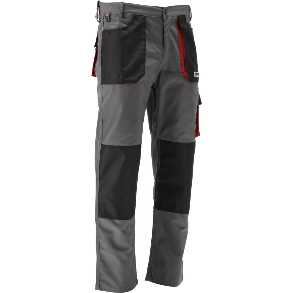Pracovné nohavice s piatimi vreckami, z ktorých tri majú zapínanie na suchý zips a špeciálne vrecká na kolenné chrániče.
