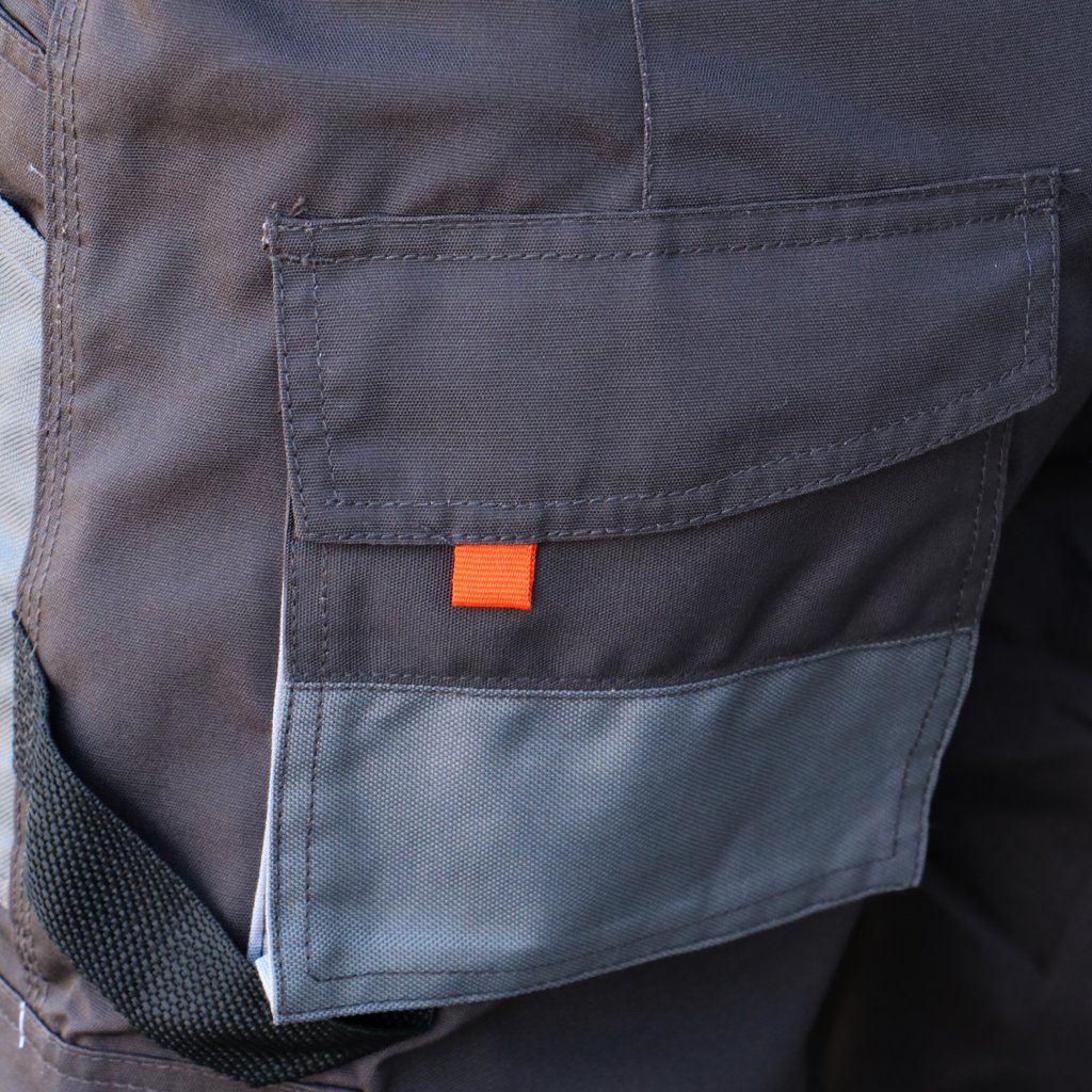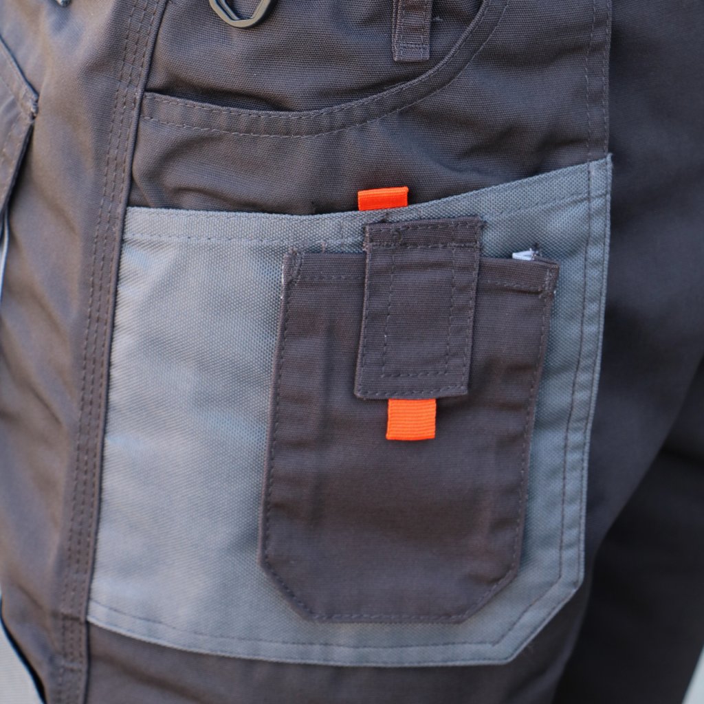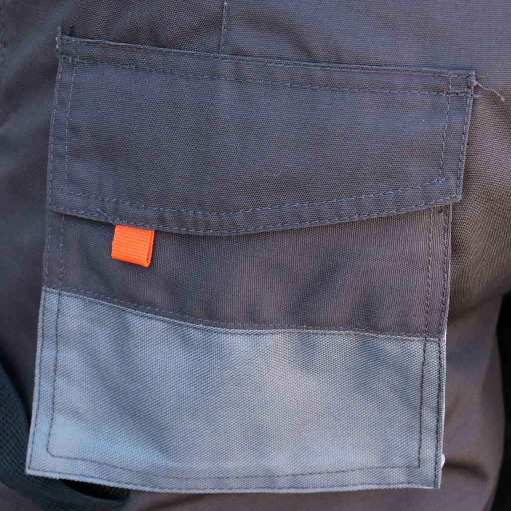 - Dve vrecká všité do bočného švu. Na vreckách je našité ďalšie vrecko so zapínaním na suchý zips. Na pravej strane ďalšie vrecko na mobil, uzavreté suchým zipsom