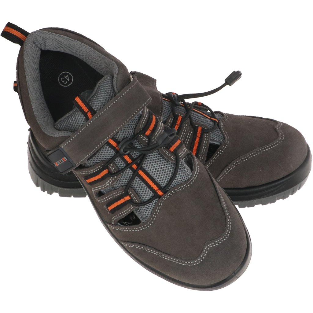 Trieda odolnosti: II SB EN 345 Bezpečnostná pracovná obuv určená na ochranu chodidiel a nôh pred vonkajšími faktormi, ktoré môžu spôsobiť mechanické a chemické poškodenie, chráni pred teplom, chladom a vlhkosťou. Topánky majú tužinky z ocele SB 200J, ktoré chránia pred poranením prstov a chodidiel. Pracky topánok: dva kusy na každej strane stiahnuté šnúrkami z odolnej, elastickej gumy Zvršok topánky sa zapína pásikom na suchý zips Mäkká, priedušná textilná podšívka - sivá sieťovina Podošva je vyrobená z dvojhustotného polyuretánu PU - čierna/šedá. Odoláva olejom, benzínu, iným organickým rozpúšťadlám a vysokým teplotám pri krátkodobom kontakte Protišmyková a antistatická podrážka. Absorpcia energie v oblasti päty. Hlboký dezén zaisťuje vysokú stabilitu topánky a pohodlie Veľmi dobré hygienické vlastnosti