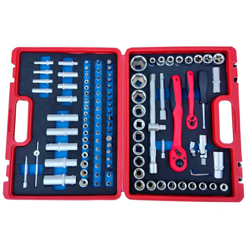 Špeciálna gola sada s penou, ktorá udrží všetky hlavice na svojom mieste! Nástrčné kľúče sú vyrobené z kvalitných materiálov CrV. Celopoplastované račne s pogumovanou ručkou pre pevné uchopenie. Pevná račňa so 72 zubovým prevodom. Odolný plastový kufrík z hrubého plastu, ktorý odolá aj drsnému zaobchádzaniu. Produkt je vhodný do každej garáže, domácej dielne, servisu.