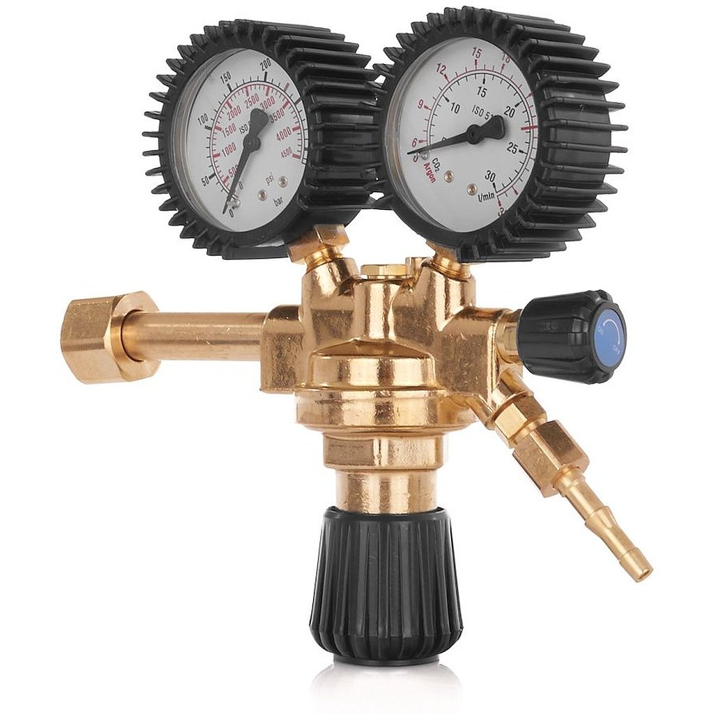 - Dva tlakomery: Regulátor je vybavený dvoma tlakomermi, ktoré umožňujú sledovanie prietoku aj vstupného tlaku. Vďaka tomu máte prácu plne pod kontrolou a môžete presne sledovať zmeny tlaku počas práce.