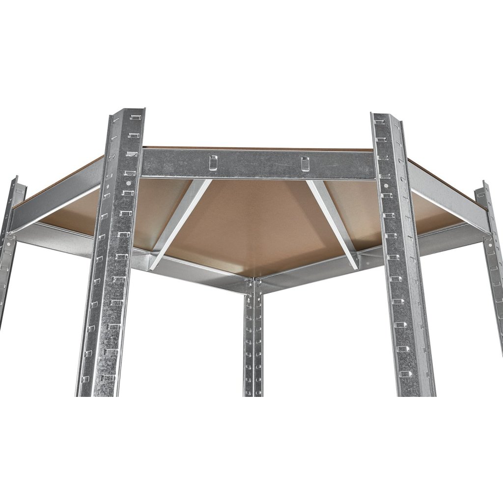 Táto robustná rohová polica bola navrhnutá tak, aby maximalizovala využitie ťažko dostupných priestorov v garážach, pivniciach, skladoch, dielňach a technických miestnostiach. Vďaka svojmu jedinečnému dizajnu dokonale vyplní rohové priestory a zároveň zabezpečí vysokú stabilitu a nosnosť.