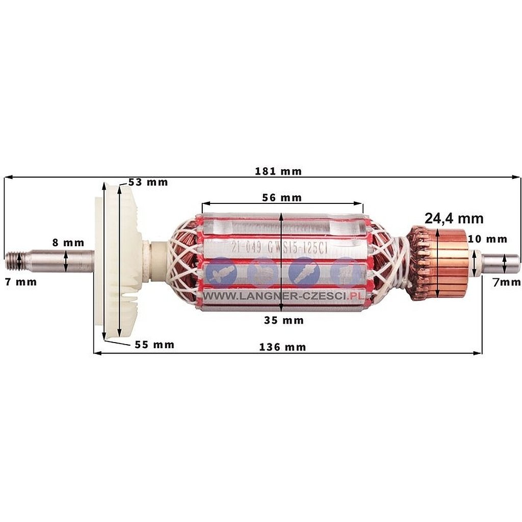 Rotor pre uhlovú brúsku BOSCH komplet s ložiskami, magnetom a kefami.