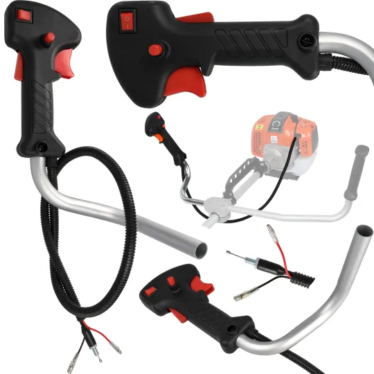 Rúčka s pohodlnou rukoväťou, spínačom a plynovým vedením! Rukoväť s káblom umožňujúca správnu inštaláciu na veľkú časť kosy na trhu.
