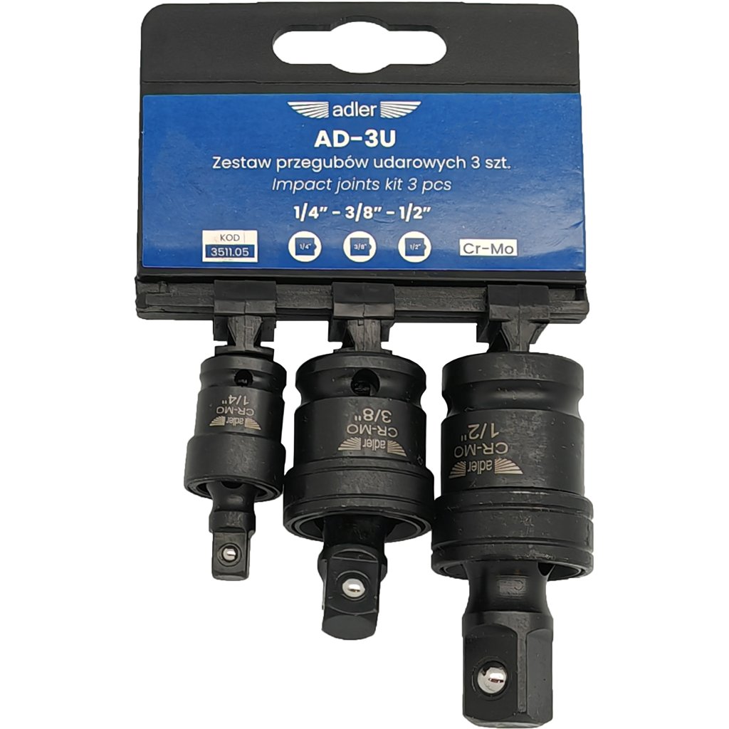 Sada 3 guľových úderových kĺbov 1/2", 3/8", 1/4" - Adler