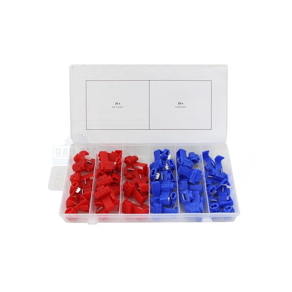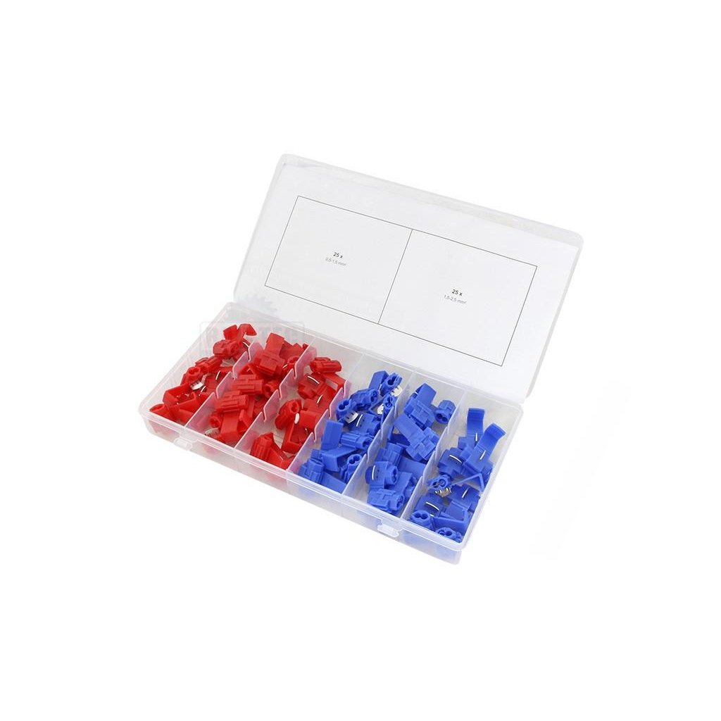 - Sada obsahuje 50 ks. káblových samorezných rýchlospojok v dvoch farbách a rozmeroch
