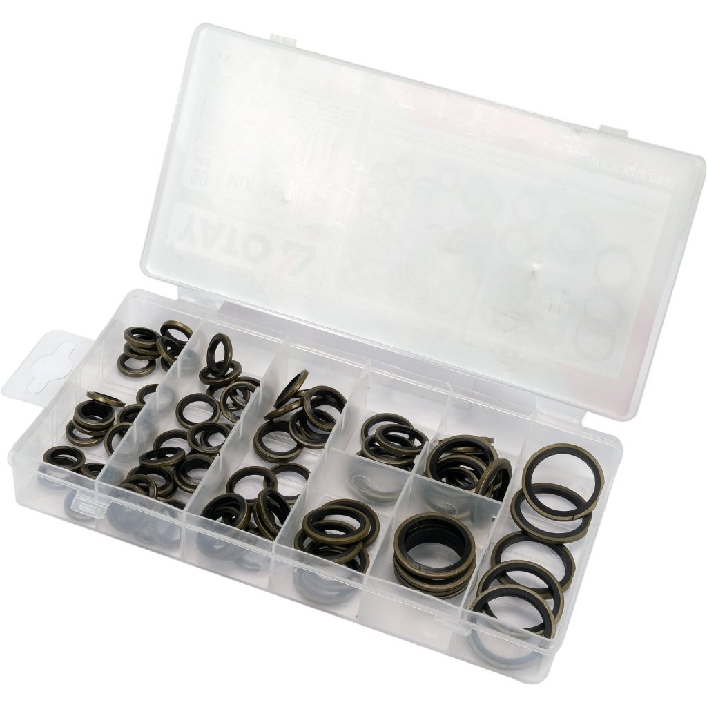 Sada 90 oceľovo-gumových podložiek.